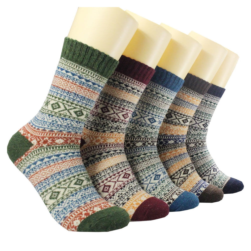Adven 5 Pairs Wool Socks For Women Men Vintage Winter Warm Thick Cozy Socks Knitted Casual Soft Socks Walmart Com